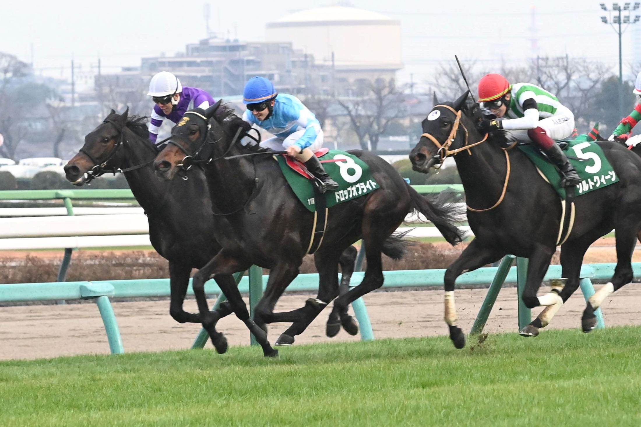 ターコイズSを制したドロップオブライト(左から2頭目)(青帽)=撮影・持木克友